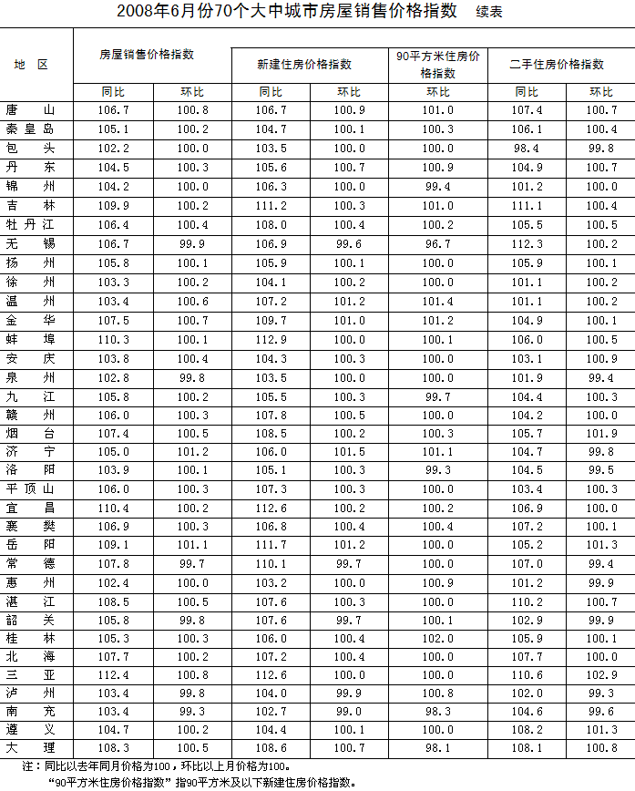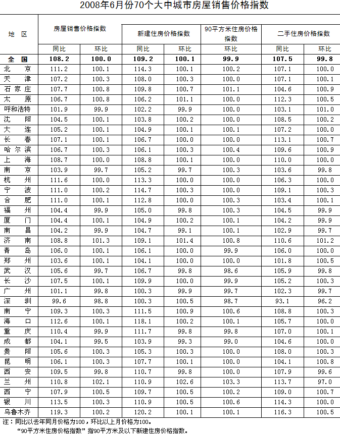 根據(jù)國(guó)家發(fā)展改革委、國(guó)家統(tǒng)計(jì)局調(diào)查顯示,6月份,全國(guó)70個(gè)大中城市房屋銷售價(jià)格同比上漲8.2%,漲幅比5月低1個(gè)百分點(diǎn);環(huán)比價(jià)格與上月持平。