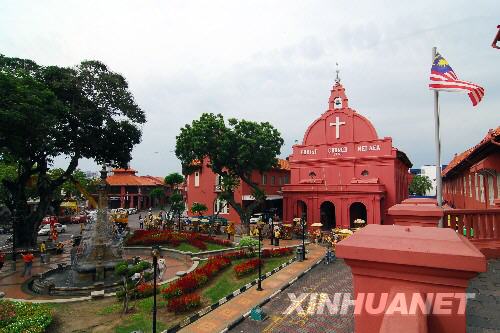 馬來(lái)西亞馬六甲海峽歷史城市馬六甲和檳城于2008年7月7日被聯(lián)合國(guó)教科文組織列為世界文化遺產(chǎn)。當(dāng)?shù)卣壳耙阎贫ㄐ袆?dòng)計(jì)劃加強(qiáng)對(duì)世界文化遺產(chǎn)的保護(hù),并將于8月舉行申遺成功慶;顒(dòng)。圖為馬六甲市內(nèi)一座由荷蘭人于1753年建造的教堂,該教堂是馬六甲市標(biāo)志性建筑之一(2008年7月18日攝)。 |