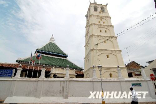 圖為馬六甲市內(nèi)的甘榜吉寧清真寺,該清真寺由印度人于18世紀(jì)早期修建,是馬來(lái)西亞最古老的清真寺之一(2008年7月18日攝)。 |