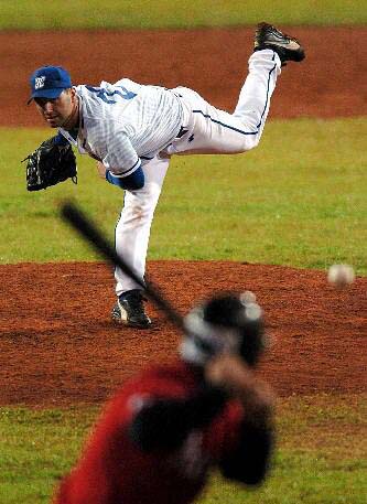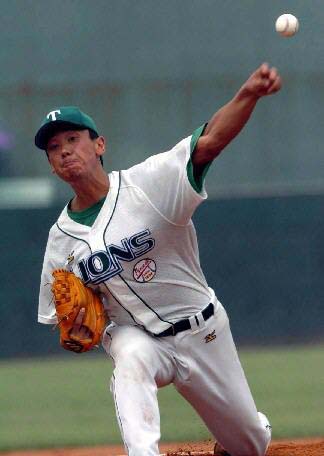 2004年7月11日,天津雄獅隊(duì)球員張萬軍在投球。當(dāng)日,2004年全國(guó)棒球聯(lián)賽總決賽在天津落下帷幕,經(jīng)過五場(chǎng)激戰(zhàn),衛(wèi)冕冠軍北京猛虎隊(duì)以3比2力克天津雄獅隊(duì)蟬聯(lián)冠軍。