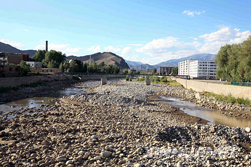 流經(jīng)新疆阿勒泰市的克蘭河河道因缺水而裸露出鵝卵石(7月23日攝)。新疆今年遭遇自1974年以來最為嚴(yán)重的旱災(zāi),全疆大部分地區(qū)春夏連旱已成定局,造成農(nóng)作物大面積絕收,2.8億畝草場干旱,畜牧業(yè)受災(zāi)嚴(yán)重。在旱情最為嚴(yán)重的塔城、阿勒泰兩地,受旱草場面積占到可利用草場面積的60%。 | |