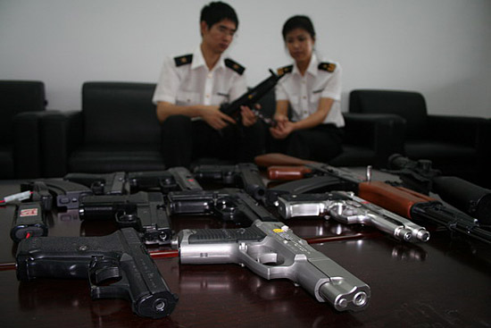 大連海關(guān)日前啟動奧運安保應(yīng)急預(yù)案,在空港一舉截獲仿真槍10支,這是該關(guān)今年以來查獲的第三起仿真槍進境事件。