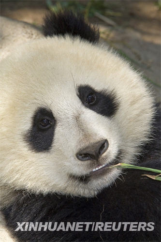 8月1日,在美國(guó)圣迭戈動(dòng)物園,大熊貓“珍珍”在吃竹子。“珍珍”是2007年8月3日在這家動(dòng)物園由大熊貓“白云”產(chǎn)下的,現(xiàn)在已有約40磅(約合18公斤)重,能夠進(jìn)食竹子等固體食物。“珍珍”是在圣迭戈動(dòng)物園誕生的第四只大熊貓。 新華社/路透