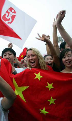 在北京,在上海,在青島、在沈陽……8月8日,這一刻充滿了奧運(yùn)氣氛,人們以各自不同的方式為北京喝彩,為奧運(yùn)狂歡。