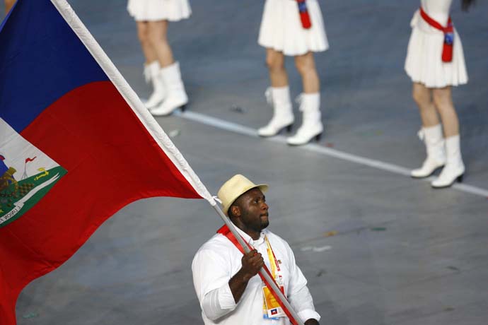>> 海地代表團(tuán)在開幕式上入場(chǎng)