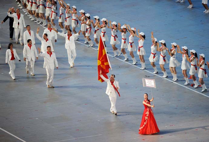 >> 馬其頓代表團(tuán)在開幕式上入場(chǎng)