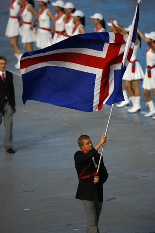 >> 冰島代表團(tuán)在開幕式上入場(chǎng)