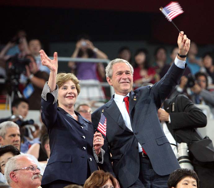 >> 美國總統(tǒng)布什和夫人在奧運會開幕式上