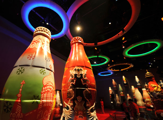 8月9日,在北京奧林匹克公園,來自全國各地的34個(gè)可口可樂藝術(shù)瓶向公眾展出,精美的“瓶體”藝術(shù)品展現(xiàn)中國傳統(tǒng)文化和各地民俗風(fēng)情,是奧運(yùn)與文化、商業(yè)、藝術(shù)的精巧結(jié)合。這是8月9日在奧林匹克公園拍攝的可口可樂藝術(shù)瓶。