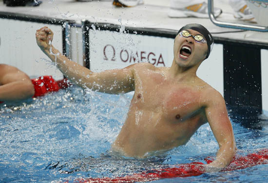 在男子100米蛙泳決賽中,日本名將北島康介不僅蟬聯(lián)奧運(yùn)冠軍,而且打破了美國人漢森保持的世界紀(jì)錄。北島在雅典獲得過100米、200米蛙泳的冠軍,他說:“雖然都是金牌,但與4年前相比,這次比賽的水平更高,我們游得更快,所以特別興奮! 雅典奧運(yùn)會(huì)以來,男子“蛙王”之爭就一直在日本的北島康介和美國的漢森之間進(jìn)行。在2005年、2007年世錦賽上,漢森都在100米蛙泳項(xiàng)目上戰(zhàn)勝了北島,并曾手握世界紀(jì)錄。不過,漢森在11日的比賽中僅獲得第四名,世界紀(jì)錄也歸于北島。 挪威選手厄恩和法國選手迪博斯克分獲這個(gè)項(xiàng)目的銀牌和銅牌。