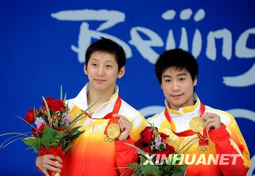 8月11日,中國“月亮組合”林躍(左)、火亮首次亮相奧運(yùn)大賽,獲得北京奧運(yùn)會男子10米雙人跳臺跳水金牌。這是當(dāng)天中國代表團(tuán)獲得的首枚金牌,也是中國代表團(tuán)在本屆奧運(yùn)會上獲得的第七枚金牌。林躍1991年出生,籍貫廣州潮州。火亮出生于1989年,來自上海跳水隊(duì)。