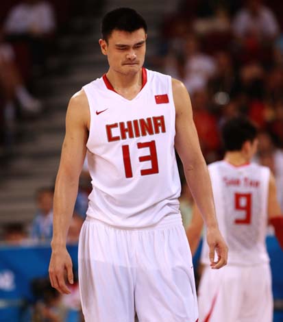 8月12日,中國隊(duì)13號姚明若有所思。