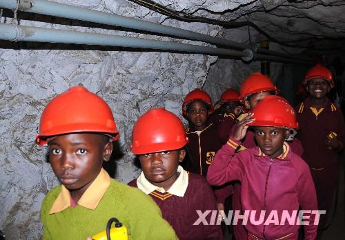 8月13日,在南非約翰內(nèi)斯堡的金礦博物館,一群小學(xué)生在金礦巷道里參觀。 |