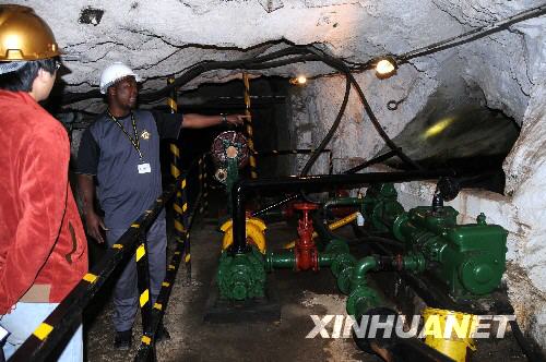 8月13日,在南非約翰內(nèi)斯堡的金礦博物館,一名工作人員在巷道里向參觀者講解金礦的排水設(shè)施。 | |