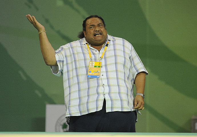 8月14日,在北京科技大學(xué)體育館舉行的北京奧運會柔道女子78公斤級決賽中,古巴選手亞倫妮斯·卡斯蒂略的教練在場外指揮,神情焦灼。最終,古巴選手亞倫妮斯·卡斯蒂略不敵中國選手楊秀麗,獲得冠軍。