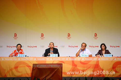 日期:8月15日 時間:11:45 地點:北京奧運會主新聞中心 主持人孫偉德:早上好!歡迎大家出席奧組委和IOC聯(lián)合例行發(fā)布會,今天很高興請到北京奧組委執(zhí)行副主席兼秘書長王偉先生、國際奧委會新聞宣傳部部長Giselle