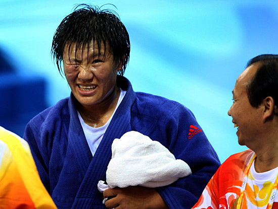 在山呼海嘯般的吶喊聲中,兩個強壯的女人頭部相牴,僵持不下。汗,一滴一滴掉在柔道墊上。 這是北京奧運會女子柔道78公斤級的決賽,25歲的楊秀麗與古巴選手亞倫妮斯·卡斯蒂略進行了本屆奧運會歷時最長的一次柔道比賽。楊秀麗右眼下部受傷,她有點睜不開這只眼睛,但她堅信:她將贏得這枚金牌。 她贏了。她滿臉汗水,眼睛腫著,走下臺來,朝教練劉永福喊了聲“師父!” 就為了叫了這一聲,她整整努力了10年! 楊秀麗是在1998年碰到劉永福的。 在此之前,這位農(nóng)家姑娘練過鉛球,她從小力氣頗大,在她的老家遼寧省阜新市阜新蒙古族自治縣八家子鄉(xiāng)水泉村,家里院里現(xiàn)在還放著一個用來飲馬的大石槽子。這個大石槽子特別重,一般的成人想要搬動它都很困難,但楊秀麗12歲時就能把它搬起來。 1997年,楊秀麗進入阜新市體校練柔道,1998年,她進入遼寧省隊,在那里,她碰到了劉永福,中國柔道的傳奇教練。 楊秀麗很內(nèi)向,訓練放不開,拿不出狠勁來。劉永福很急,怎么激她,都不管用。最后劉永福發(fā)了狠話:“就你這點膽量怎么沖奧運會?要不趕緊回家得了!你前面就兩條路,一是把我摔倒,咱們一起拿奧運冠軍,二就是回宿舍收拾東西滾蛋!” 楊秀麗被逼無奈,終于咬著牙沖向劉永福,一上手就把劉永福給撂翻了! 小姑娘嚇壞了,劉永福卻躺在地上樂,老胳膊老腿沒事。這以后,楊秀麗訓練就放開了,敢喊敢沖。 但是,她一直不敢喊劉永!皫煾浮,對這位帶出過莊曉巖、孫福明、袁華三位奧運冠軍的傳奇人物,她畏若天神。 如今,10年努力的艱辛長路,終于在北京科技大學體育館畫上了一個圓滿句號。在賽后的新聞發(fā)布會上,楊秀麗終于解釋了原因:“10年了,我感覺自己水平?jīng)]到那個位置,感覺沒有資格叫他師父,今天,自己終于站在最高領(lǐng)獎臺上,發(fā)自內(nèi)心叫他一聲‘師父’……” 冠軍頒獎前,楊秀麗沒有直接登臺,她先繞行一圈,輪流與三名獎牌獲得者握手,此后才登臺接受頒獎。全場中國觀眾與她一起大聲唱國歌。 這是中國選手時隔8年之后,重新登上女子柔道78公斤級的巔峰。在響成一片的閃光燈前,楊秀麗把金牌舉在胸前,她的手,不像一個25歲姑娘的手,骨節(jié)粗大,傷痕累累。 “她身體條件并不是太好,但特別能吃苦,”劉永福如是評價。 楊秀麗內(nèi)向,靦腆,但是獲得奧運冠軍后,她的話多起來了,她說自己的愛好是練書法,每天晚上都要堅持寫一寫,“我覺得寫得還可以,當然,跟師父比就差得遠了”。 劉永福一向讓自己的女弟子練習書法,在他看來,練書法能調(diào)解心氣,對一個高水平柔道選手而言,“靜氣”二字是大境界。 記者問她:“受傷了,有沒有影響比賽?” 她說:“視線是有些模糊,但這點傷算什么?抗震救災精神一直鼓勵著我,說句土話,上戰(zhàn)場死都不怕,這個算什么?只有拼,才有活路!” 楊秀麗是一名軍人運動員,她為此自豪。