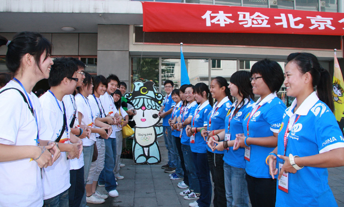 8月15日,北京西城區(qū)奧運(yùn)會(huì)城市志愿者和臺(tái)灣青少年開展奧運(yùn)會(huì)志愿服務(wù)交流活動(dòng)。當(dāng)日,“相約2008—第九屆京臺(tái)青少年交流周暨兩岸青年同心結(jié)奧運(yùn)體驗(yàn)營(yíng)”開幕式在北京西城區(qū)舉行,來(lái)自臺(tái)灣的近400名學(xué)生參加活動(dòng)。