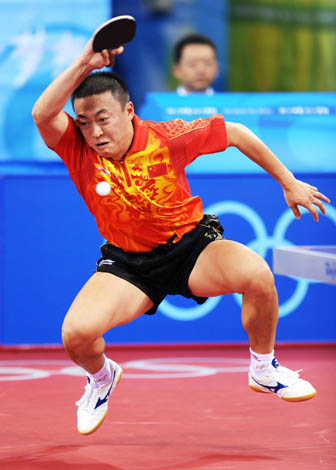 8月16日,中國選手馬琳在比賽中。當(dāng)日,中國隊(duì)在北京奧運(yùn)會(huì)乒乓球男團(tuán)半決賽中以3比0戰(zhàn)勝韓國隊(duì),挺進(jìn)決賽,將于18日與德國隊(duì)爭奪金牌。