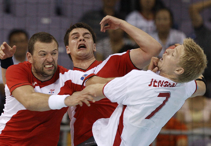 當日,在北京奧運會手球男子預(yù)賽B組第24場的比賽中,冰島隊以最后4秒得到的七米球追平丹麥隊,戰(zhàn)成32比32。