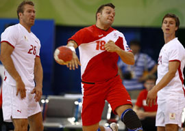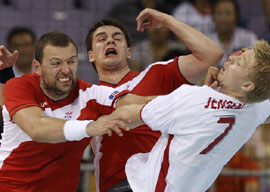 8月16日,在北京奧運(yùn)會(huì)手球男子預(yù)賽B組第24場(chǎng)的比賽中,冰島隊(duì)以最后4秒得到的七米球追平丹麥隊(duì),戰(zhàn)成32比32。