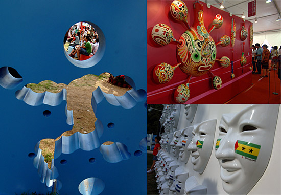 奧運文化廣場的重頭戲有兩塊:一是場地的選擇和布置,二是文藝演出和文化展示的組織安排。 據(jù)張遷介紹,奧運文化廣場的選址工作是從去年3月開始的。當時,北京市文化局向各區(qū)縣政府發(fā)出了關于商定2008年北京奧運會城市文化廣場的公函。在得到各區(qū)縣政府的回復意見后,北京市奧組委、市文化局、廣電局、公安局等部門共同對推薦上來的廣場進行了實地考察。 這次選址參照了2007年北京舉行的“體驗中國”奧運文化廣場的標準,首先對場地容積設了兩道數(shù)字底線,一是面積要在2000平方米以上,二是同時可供1000人以上開展群體活動。除此之外,奧運文化廣場還被要求距離居民區(qū)較近,交通便利,設施安全,配套設施比較完善,能夠擺放大屏幕,供群眾觀看體育賽事,同時配備固定的演出舞臺或能搭建臨時舞臺,為表演團隊提供必要的配套服務。選址團隊還強調了兩個特色,一是廣場建筑要有地區(qū)或民族特色,二是文化活動要主題鮮明,要顯示出中國特色。 最后,20多個符合各項要求的奧運文化廣場被初步篩了出來。 統(tǒng)一而醒目的景觀環(huán)境,有力地彰顯出文化廣場的奧運身份,是本屆奧運文化廣場活動的一大亮點。 北京奧運文化廣場活動項目負責人張遷評價說,這是北京舉辦文化廣場活動以來的一項重大收獲,相當于建立了一套專屬于文化廣場活動的CIS(企業(yè)識別系統(tǒng)),從營銷角度看,這對今后提升文化廣場的關注度和凝聚力都大有好處。 “以往的文化廣場,雖然在名稱上是統(tǒng)一的,但在景觀布置方面基本上屬于各區(qū)縣各干各的,你在天上放倆氣球,我在門口搭一個充氣的彩虹門,效果好一些的也就是背板的圖案是一樣的”,張遷說,“這次已經(jīng)開放的26個文化廣場在視覺上則是相對統(tǒng)一的,包括刀旗、背板、指示牌在內的所有景觀道具都是我們根據(jù)北京奧組委景觀部提供的基本素材而統(tǒng)一制作的,再加上活動理念的高度統(tǒng)一以及基本相同的運作模式,這就形成了一個相對完整的識別系統(tǒng),就像麥當勞的大‘M’一樣,讓人過目不忘!
