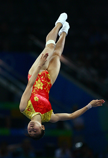 8月18日,中國選手何雯娜在進(jìn)行比賽。當(dāng)日,在國家體育館進(jìn)行的蹦床女子決賽中,中國選手何雯娜以37.80分的成績奪得冠軍。
