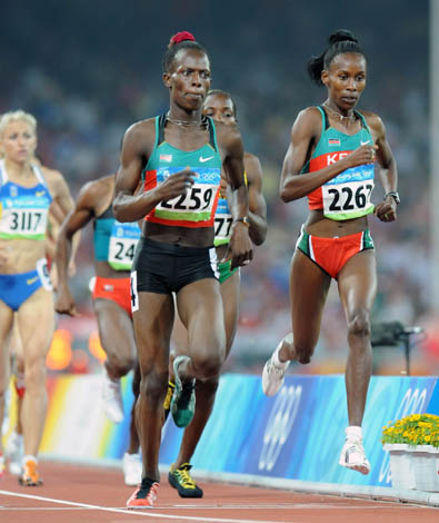 8月18日,肯尼亞選手杰利莫(前左)在北京奧運(yùn)會(huì)女子800米決賽中奪得金牌。