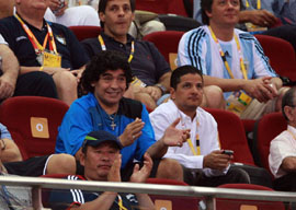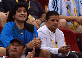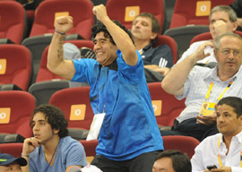 8月18日,阿根廷著名足球明星馬拉多納前來(lái)觀看阿根廷男籃與俄羅斯比賽。
