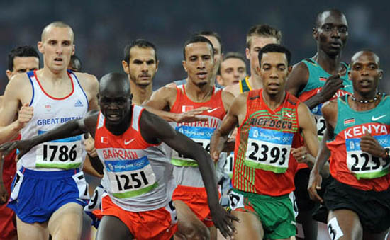 北京時(shí)間8月19日,北京奧運(yùn)會(huì)田徑比賽第五日,今天晚上在國家體育場(chǎng)進(jìn)行的男子1500米決賽中,巴林選手拉希德-拉姆齊后來居上,以3分32秒94獲得金牌,這是巴林在奧運(yùn)會(huì)上獲得的首枚金牌?夏醽嗊x手阿斯貝爾-基普魯托-基普羅普和新西蘭選手尼克-威利斯分獲銀牌和銅牌,他們的成績(jī)是3分33秒11和3分34秒16。 由于2004年雅典奧運(yùn)會(huì)銀牌得主美國名將伯納德-拉加特在半決賽中被其他選手卡位,沒能順利超越,僅獲小組第6名,無緣決賽,因此,今天的決賽誰能奪冠成為最大的懸念。 比賽在1200米之前,還很難看出個(gè)高下。400米的時(shí)候,肯尼亞的基普羅普跑在最前面,而800米和1200米的時(shí)候肯尼亞的喬蓋卻跑在了最前面。最后的300米,各位選手都開始沖刺,這也成了比賽最緊張的時(shí)刻。