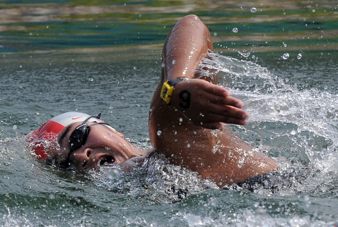 中國(guó)選手方晏喬在女子10公里馬拉松游泳比賽中,她以2小時(shí)01分07秒9的成績(jī)名列第19。