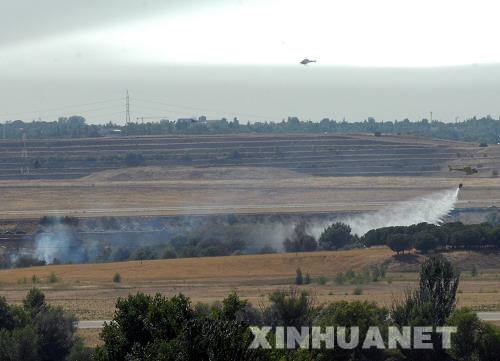 8月20日,一架消防直升機在西班牙馬德里機場的飛機失事現(xiàn)場滅火。當日下午,西班牙航空公司的一架客機在馬德里機場起飛時沖出跑道并起火。據(jù)當?shù)鼐仍藛T說,事故已造成146人死亡,20多人受傷。