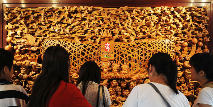 廣東的“祥云小屋”里,三位雕藝師用一年多時(shí)間制作而成的潮州木雕《百鳥歸巢》讓人嘆為觀止。奧運(yùn)會和殘奧會期間,北京奧組委和文化部共同主辦以“中國故事”為主題的大型文化展示活動。在奧林匹克公園的30多個(gè)“祥云小屋”里,以實(shí)物、多媒體視聽藝術(shù)、現(xiàn)場手工藝展示等方式講述的“中國故事”,展示了中國各地的文化遺產(chǎn)和多姿多彩的民族民間文化。