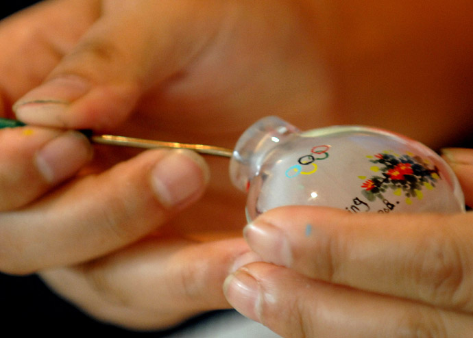 8月20日,北京民間藝術(shù)家正在制作內(nèi)畫鼻煙壺。