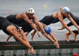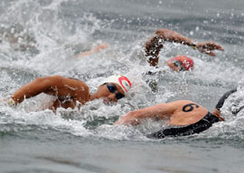 8月21日,北京奧運會男子10公里馬拉松游泳比賽在順義奧林匹克水上公園冒雨進行。