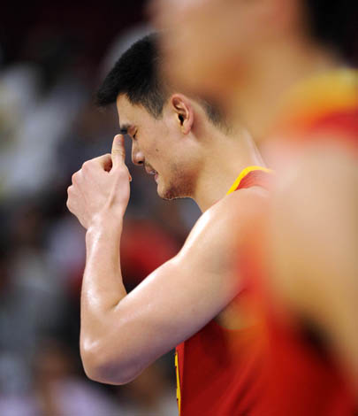 8月20日,中國(guó)隊(duì)隊(duì)員姚明在比賽中。