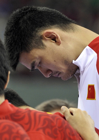 8月20日,在北京五棵松奧林匹克籃球館進行的北京奧運會男籃1/4決賽中,中國隊以68比94不敵立陶宛隊。這是中國男籃隊員姚明。