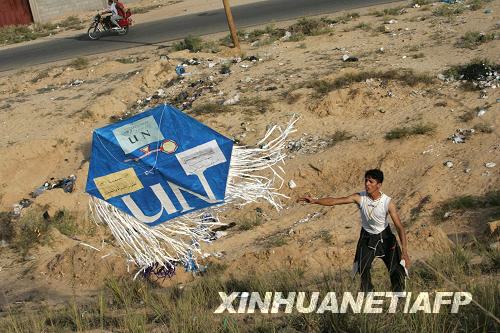 8月20日,一名巴勒斯坦青年在加沙地帶南部的漢尤尼斯放風(fēng)箏。目前,聯(lián)合國近東巴勒斯坦難民救濟(jì)和工程處在加沙地帶開展夏令營活動,許多加沙青少年參與其中以調(diào)節(jié)心情。新華社/法新