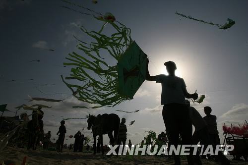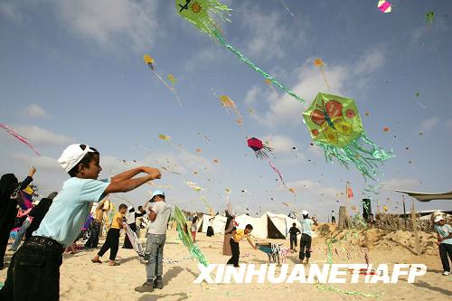 8月20日,巴勒斯坦青少年在加沙地帶南部的漢尤尼斯放風(fēng)箏。新華社/法新