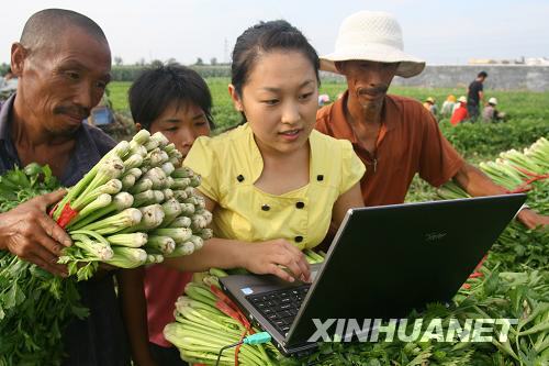 8月20日,山東博興縣博昌街道辦西谷王村村委會(huì)的劉敏(中)通過(guò)網(wǎng)絡(luò)視頻幫助農(nóng)民銷售西芹。日前,博興縣博昌街道辦發(fā)展種植的1萬(wàn)多畝無(wú)公害西芹已陸續(xù)上市。當(dāng)?shù)卮逦瘯?huì)幫助農(nóng)民通過(guò)網(wǎng)絡(luò)視頻在田間地頭直接與外地客戶接觸,洽談蔬菜購(gòu)銷,吸引了來(lái)自全國(guó)各地的客商。