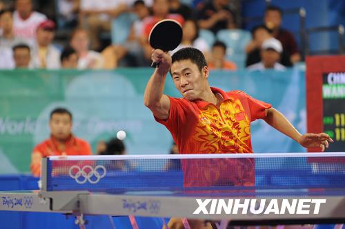 憑著一個滾網(wǎng)運氣球,馬琳22日下午以4:0擊敗韓國老對手吳尚垠,與隊友王勵勤會師奧運會乒乓球男子單打半決賽。
