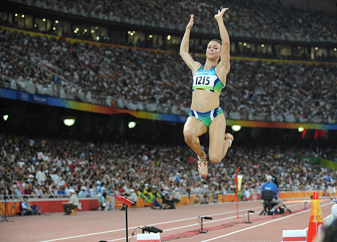 8月22日,巴西選手毛倫·伊加·馬吉在比賽中。當日,馬吉在北京奧運會女子跳遠決賽中奪得金牌。