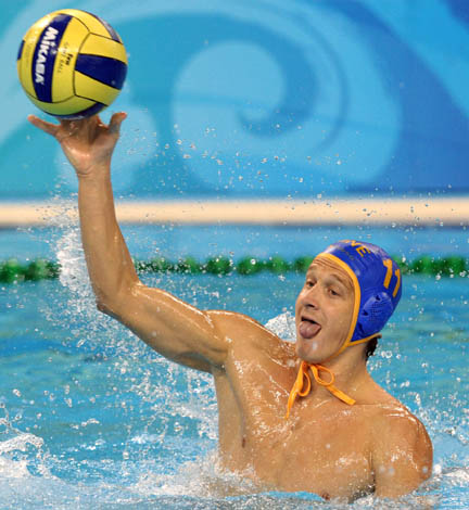 8月22日,黑山隊(duì)球員弗拉迪米爾·戈伊科維奇在比賽中吐出舌頭。當(dāng)日,在英東游泳館舉行的北京奧運(yùn)會(huì)男子水球半決賽中,匈牙利隊(duì)以11比9戰(zhàn)勝黑山隊(duì),闖入決賽。