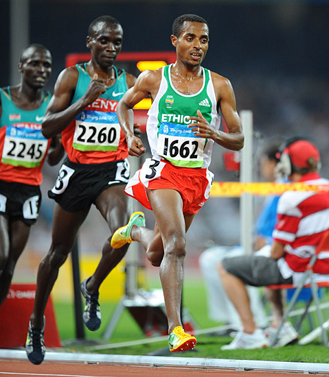 埃塞俄比亞選手貝耶查(右)在北京奧運(yùn)會(huì)男子5000米決賽中奪得金牌并打破奧運(yùn)會(huì)紀(jì)錄。