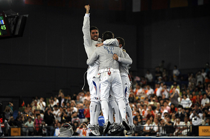 法國隊(duì)衛(wèi)冕男子佩劍團(tuán)體冠軍。