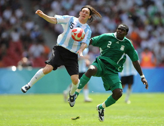 經(jīng)歷了巴塞羅那俱樂部與阿根廷隊的反復(fù)爭執(zhí),21歲的梅西終于如愿來到了奧運賽場。“參加奧運始終是我唯一的選擇。”梅西在兩方的扯皮中保持著堅定的決心。 北京奧運會賽場上,梅西是阿根廷藍(lán)白風(fēng)暴的偉大導(dǎo)演,也是該隊區(qū)別于其他球隊的“核武器”。對科特迪瓦隊時,他用一次進(jìn)球和一次助攻擊潰了強大的對手;對荷蘭隊的比賽中,他又用一個進(jìn)球和一記助攻幫助球隊鎖定勝局;在3:0擊敗巴西隊的比賽中,梅西幾乎參與了每一次進(jìn)球,與尼日利亞隊的決賽也是他的巧妙助攻幫助隊友攻入制勝球。 梅西不僅征服了球迷,還征服了更多體育界同行。NBA巨星科比已成為其粉絲,親自來看他比賽,還說梅西是所有運動員中最吸引他的,因為他在場上和別人都不一樣。尼日利亞隊隊員在頒獎儀式前甚至爭搶著和梅西合影。