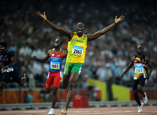 盡管在今年5月曾經(jīng)打破男子百米世界紀(jì)錄,但博爾特真正被世界認(rèn)知,并且登堂入室成為體壇巨星,是在北京奧運(yùn)會(huì)。他在雅典奧運(yùn)會(huì)時(shí)僅獲200米第五名,去年田徑世錦賽也只獲兩項(xiàng)亞軍。然而,這個(gè)身高1米96的“大鳥”,在“鳥巢”連續(xù)獲得男子100米、200米、4X100米冠軍,并刷新這三個(gè)項(xiàng)目的世界紀(jì)錄。尤其是在100米決賽中,他放棄沖刺,跳舞一般就跑出了9秒69,而200米世界紀(jì)錄已保持了12年之久。從來(lái)沒(méi)有任何人在一屆奧運(yùn)會(huì)上獨(dú)拿3枚短跑金牌并全部打破世界紀(jì)錄,其成就絕對(duì)是前無(wú)古人。