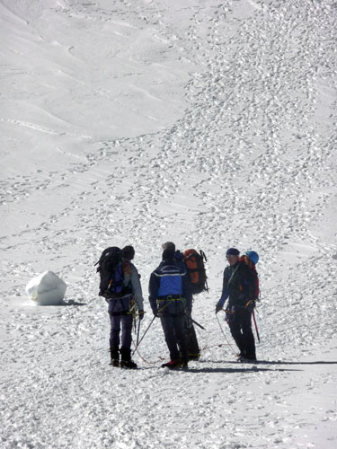 8月24日,在法國東部沙莫尼山谷勃朗峰法國一側(cè)的海拔3800米處,救援人員搜救雪崩事故的失蹤者。歐洲最高峰勃朗峰當天凌晨發(fā)生雪崩,目前造成至少8人受傷,10人下落不明。 新華社/法新