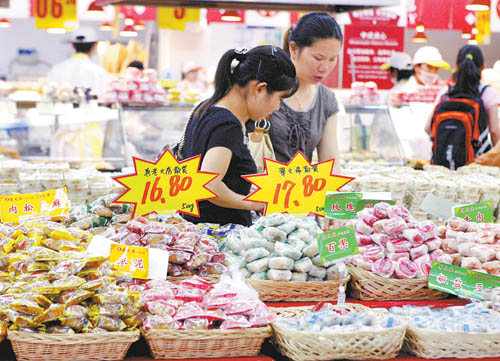 8月25日,顧客在上海一家超市內(nèi)選購(gòu)散裝月餅。中秋節(jié)漸近,上海各超市賣場(chǎng)內(nèi)的“月餅大戰(zhàn)”提前展開。擺上專柜的月餅多為散裝或簡(jiǎn)裝產(chǎn)品,由于包裝簡(jiǎn)化,價(jià)廉物美,口味豐富,更受消費(fèi)者歡迎。