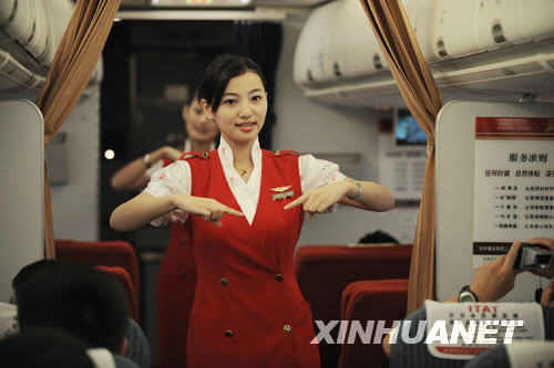 8月30日,執(zhí)飛深圳至武漢的深航ZH9897航班乘務(wù)員蔣康康為旅客表演手語(yǔ)歌曲《微笑》。